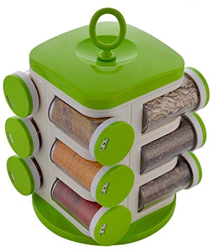 your kitchen and save valuable time while cooking. You can store a great selection of your finest spices, herbs, condiments, mouth fresheners and more in these jars.Durable Build Quality, Easy to Maintain Made from 100% food grade plastic, the Kitchen Hub Plastic 12-in-1 spice rack is sturdy and will last for a long time with regular use